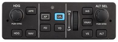 The Garmin GMC 507 AP module provides a Blue Level (LVL) button, heading knob, altitude select knob,
